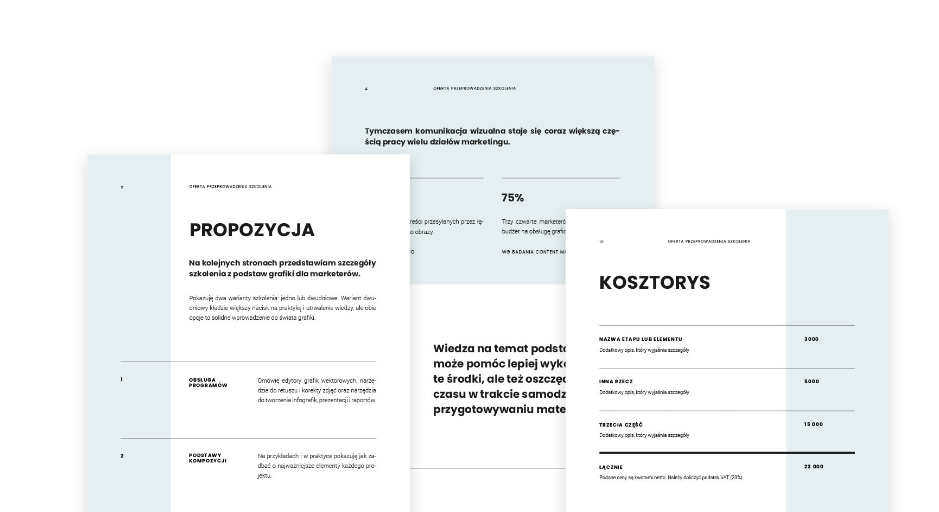 - Gotowy szablon oferty w formacie indd, docx i pages